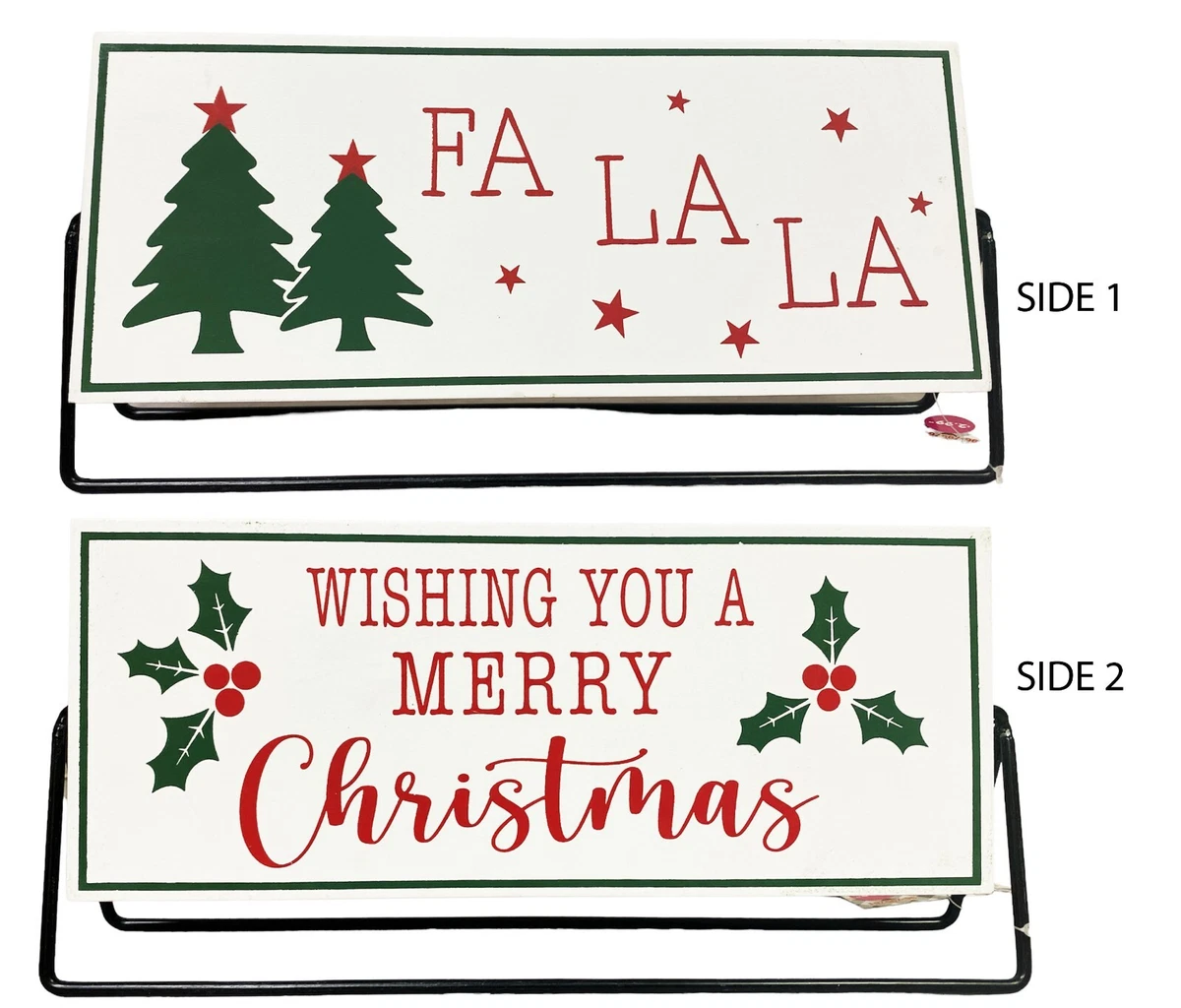 Christmas Wooden Tabletop Flip Sign with Metal Santa Stop here
